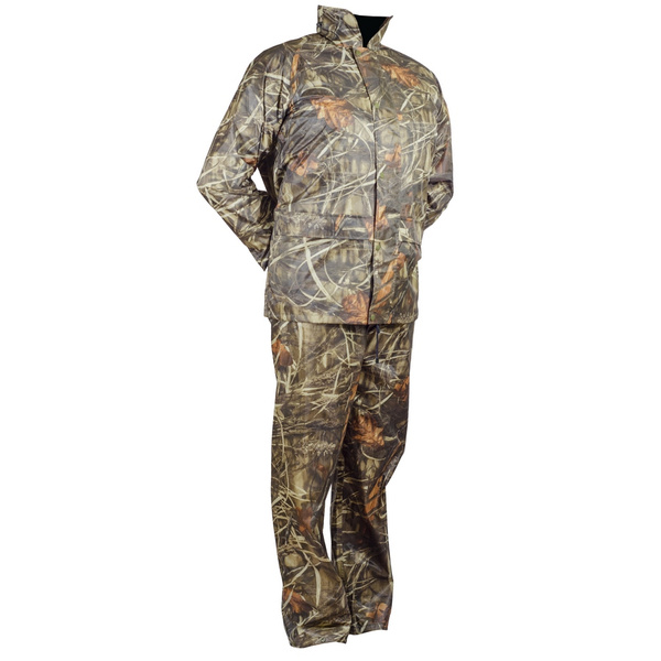 Kurtka przeciwdeszczowa z dopinanym kapturem, zapinana na kryty zamek , dwie duże kieszenie z klapkami. Spodnie z elastycznym pasem, wszystkie szwy szczelnie zespolone. Lekki komplet przeciwdeszczowy, 100% nieprzemakalności.