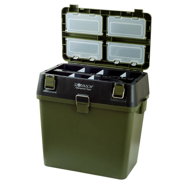 Wielopoziomowe skrzynki wędkarskie z dużą liczbą przegródek. Pozwalają na rozmieszczenie wędkarskiego ekwipunku wedle