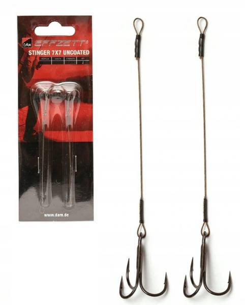 Bardzo popularne, gotowe systemy dozbrojeniowe EFFZETT® 7×7 Stingers wykonane z wysokiej jakości drutu ze stali nierdzewnej i wyposażone w bardzo ostre kotwiczki. Dozbrojki posiadają odpowiednio dobranej wielkości pętelki, tak aby szybko i wygodnie można było je założyć na oczko główki jigowej. Konstrukcja użytego druta w dodatkowej powłoce jest na tyle elastyczna, że nie ogranicza ruchów przynęty. Dostępne od 5 do 12 cm długości (długość łącznie z kotwiczką) z różnymi rozmiarami kotwiczek. Dwie sztuki w opakowaniu.