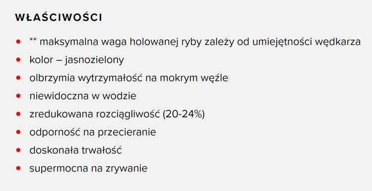 Unikalna technologia Nano-Core pozwoliła uzyskać rdzeń żyłki o niskiej rozciągliwości, nieosiągalnej dla żyłek innych producentów.
