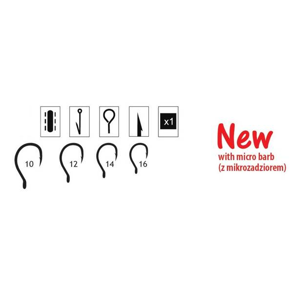 Kute haczyki z oczkiem do prezentowania przynęt na włosie. Szeroki łuk kolankowy oraz mikrozadzior zapewniają pewny hol ryby.