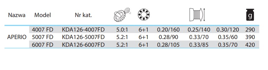 Aperio to lekki, precyzyjny. Dzięki zastosowaniu siedmiu łożysk, jego praca jest płynna, również podczas holu okazałych ryb. Zwarta konstrukcja i nowoczesny design powodują, iż nawet największy, z dostępnych rozmiarów kołowrotka, idealnie komponuje się z każdym wędziskiem.