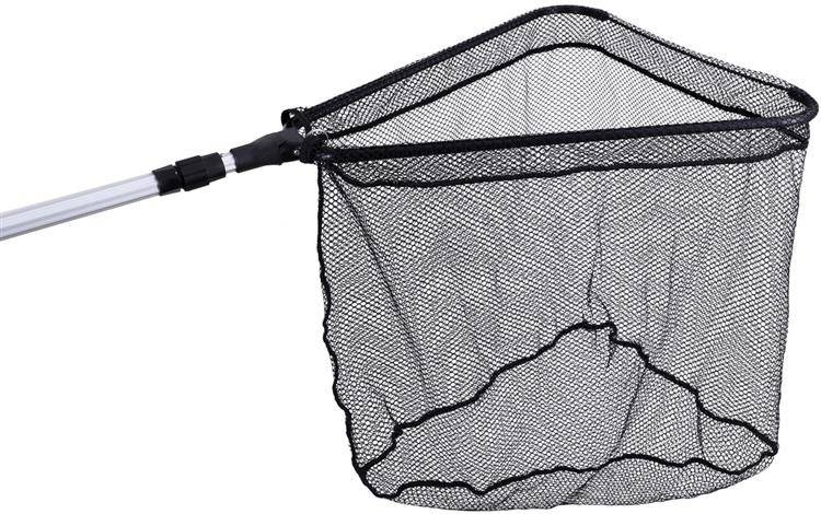Klasyczny, składany podbierak z trójkątnym koszem i mocną plastikową głowicą. Kompaktowy kosz o wymiarach 50x50cm z miękką siatką, czyni produkt bardzo uniwersalnym, a regulowana teleskopowo rękojeść pozwala bez problemu sięgnąć rybę podczas podbierania.