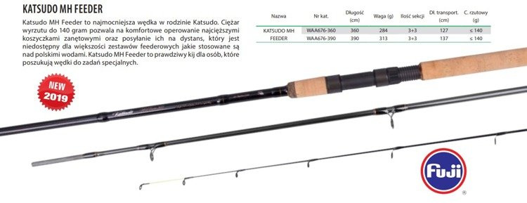 Katsudo MH Feeder to najmocniejsza wędka w rodzinie Katsudo. Ciężar wyrzutu do 140 gram pozwala na komfortowe operowanie najcięższymi koszyczkami zanętowymi oraz posyłanie ich na dystans, który jest niedostępny dla większości zestawów feederowych jakie stosowane są nad polskimi wodami. Katsudo MH Feeder to prawdziwy kij dla osób, które poszukują wędki do zadań specjalnych.