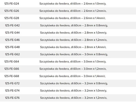 | 1ZS-FE-G02 | Szczytówka do feedera, dł.60cm - 2.5mm x 0.8mm/g, |