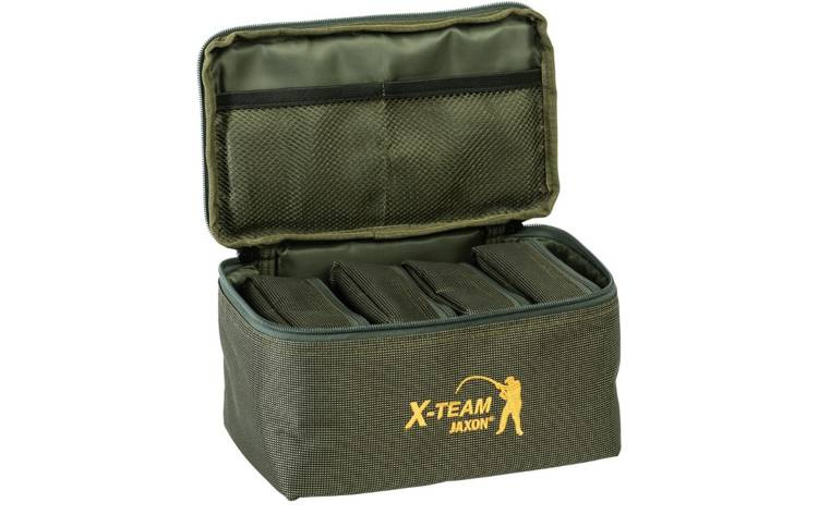 Komplet pięciu toreb Jaxon UJ-XCA08 do przechowywania akcesoriów karpiowych.