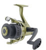 Pół kilogramowy kołowrotek mieszczący 500 metrów plecionki 0.20 mm, oparty konstrukcyjnie o 11 mocnych łożysk, zapewnia komfort wędkowania i holowania nawet bardzo silnych ryb z odległych, trudnych miejscówek! Przełożenie 5:5 do 1 pozwala na szybsze zwijanie linki. Aluminiowe szpule typu long cast zmniejszają opory tarcia podczas zarzucania nawet o 20 %. Wielostopniowa regulacja hamulca głównego i systemu wolnego biegu pozwala na dowolne modyfikacje w stosunku do warunków panujących na łowisku jak i pogody. Duże, gumowane i modelowane uchwyty podwójnej raczki zapewniają jej pewny chwyt. Rączka działa także, jako anty balans. Bardzo istotne jest pokrycie rolki kabłąka tytanem, co zabezpiecza ją przed mechanicznymi mikro uszkodzeniami niszczącymi nawijaną plecionkę lub żyłkę. Kołowrotek pozwala na łowienie wielu gatunków ryb różnymi metodami gruntowymi z karpiami na czele.