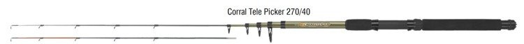 Corral Tele Picker. Pomimo konstrukcji teleskopowej, pickery te mają akcję zbliżoną do wędzisk dwuskładowych. Bardzo dobra praca pod obciążeniem, bez charakterystycznych przesztywnień. Doskonale łowi się nim z lekką sprężyną.