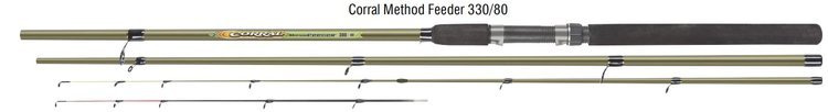 Corral Method Feeder. (g) Poręczne i praktyczne wędki do łowienia na method feeder. Długości i ciężary wyrzutowe umożliwiają łatwe dobranie odpowiedniej wędki do każdej wody na której przyjdzie Wam łowić. Dołączone wymienne szczytówki pozwolą skompletować zestaw tak, aby zarejestrować każde branie.