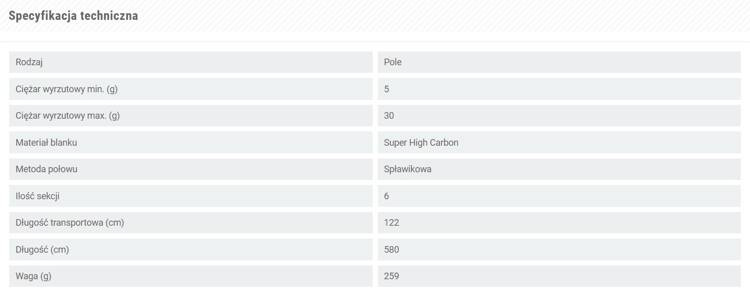 Uzbrojone zostały w uchwyt kołowrotka Fuji oraz specjalne antysplątaniowe przelotki Fuji Alconite typ K. Dość powiedzieć, że w czasie testów wędki te zebrały wyłącznie pozytywne opinie. W ofercie znalazły się zarówno superczułe wędki dla miłośników „ultralighta” jak i klasyczne wędki szczupakowo – sandaczowe. W tej rodzinie każdy wymagający spinningista znajdzie dla siebie wymarzone wędzisko.