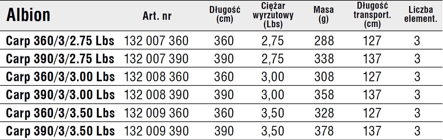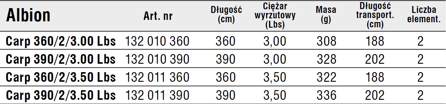 • ALBION CARP 390/3/3,5LBS WĘDKA KARPIOWA KONGER 132009390