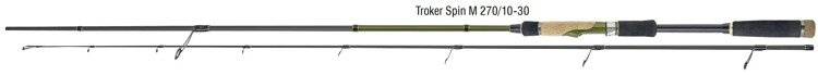 Troker Spin M. Klasyczna wędka bez wklejki pozwalająca na łowienie nieco większymi przynętami. Zróżnicowane długości pozwolą łatwo wybrać model miłośnikom brzegowych połowów jak i pasjonatom łowienia z łódki.