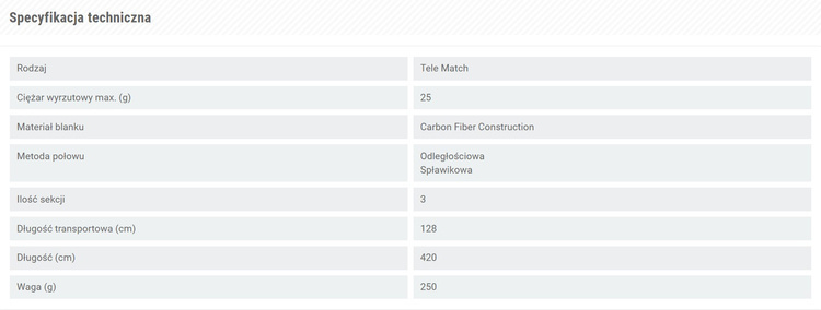 wędek trójskładowych oraz wyjątkowo małą średnicę blanku.