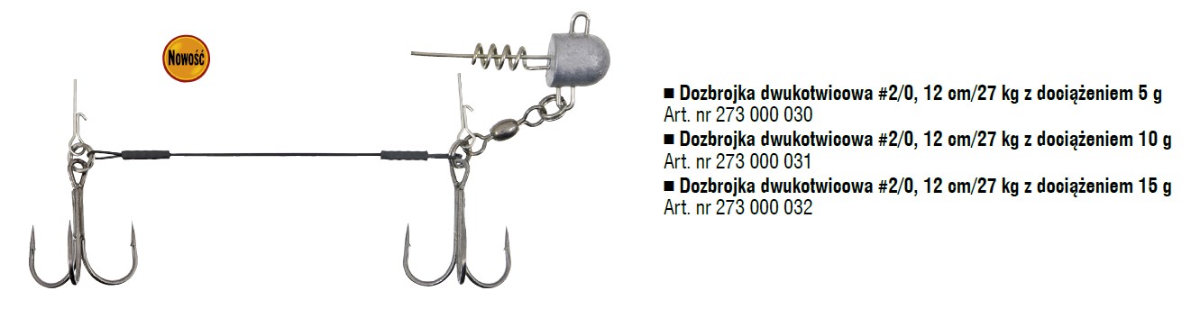 DOZBROJKA DWUKOTWICOWA 2/0, 12cm/27kg Z DOCIĄŻENIEM 5g SPINNING SYSTEM KONGER 273000030