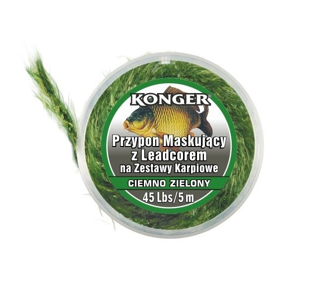 PRZYPON KARPIOWY MASKUJĄCY Z LEDCOREM CIEMNO ZIELONY 45lbs/5m KONGER 286003045