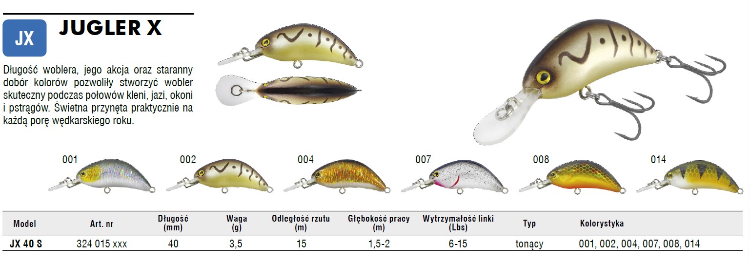 WOBLER JUGLER X 4cm S KOLOR D09 KAMATSU 324015004