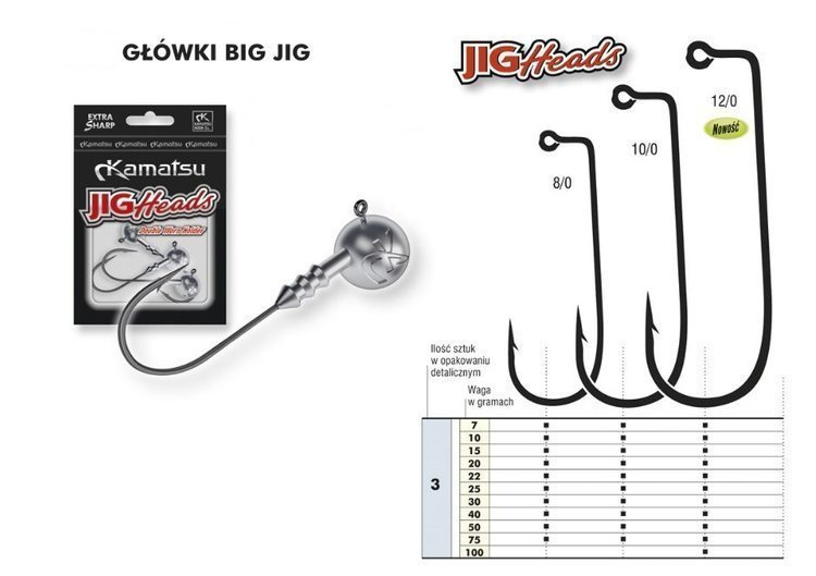 GŁÓWKA JIGOWA BIG JIG 8/0-40g OP.3SZT KAMATSU 460080040