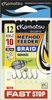 Przypony z plecionki. Oprócz tradycyjnej żyłki, materiałem na przypony, który ma liczną grupę swoich zwolenników jest plecionka. Teraz seria naszych przyponów do Method Feeder została rozszerzona o modele wykonane na specjalnych plecionkach o małych średnicach. Po tą wersję przyponów warto sięgnąć ze względu na ich miękkość i charakterystyczną dla plecionki dużą wytrzymałość. Z tych oczywistych zalet linki możemy teraz skorzystać stosując nasze nowe przypony, które w zależności od wersji zakończone są pierścieniem, fast-stopem lub bagnetem z nierdzewnego drutu. Przypony wykonaliśmy w oparciu o wyselekcjonowane rodzaje haczyków Kamatsu co pozwoli na optymalny ich dobór w zależności od stosowanej przynęty i gatunków łowionych ryb.
