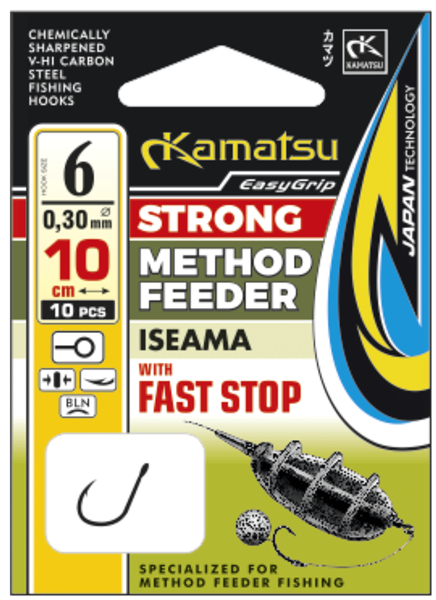 • PRZYPON METHOD FEEDER ISEAMA 10BLNO/10cm/0,22mm FAST STOP OP.10SZT KAMATSU 503001310