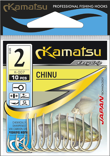 Chinu – kute, mocne haki z okrągłym kolankiem, długim trzonkiem i zagiętym zadziorem. Polecane głównie do łowienia na przynęty roślinne: kukurydzę, pęczak, groch, ciasto, ser a także kulki proteinowe (wersja z oczkiem).