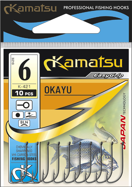 Okayu – seria haczyków z mikro zadziorem. Model polecany do metod spławikowych od skróconego zestawu przez odległościówkę aż do tradycyjnej zasiadki. Najmniejsze haki doskonałe do ochotki, większe do białych i czerwonych robaków i do wszelkiego rodzaju kanapek.