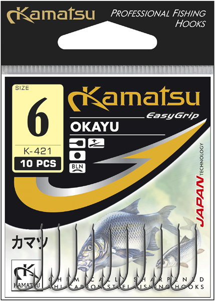 Okayu – seria haczyków z mikro zadziorem. Model polecany do metod spławikowych od skróconego zestawu przez odległościówkę aż do tradycyjnej zasiadki. Najmniejsze haki doskonałe do ochotki, większe do białych i czerwonych robaków i do wszelkiego rodzaju kanapek.