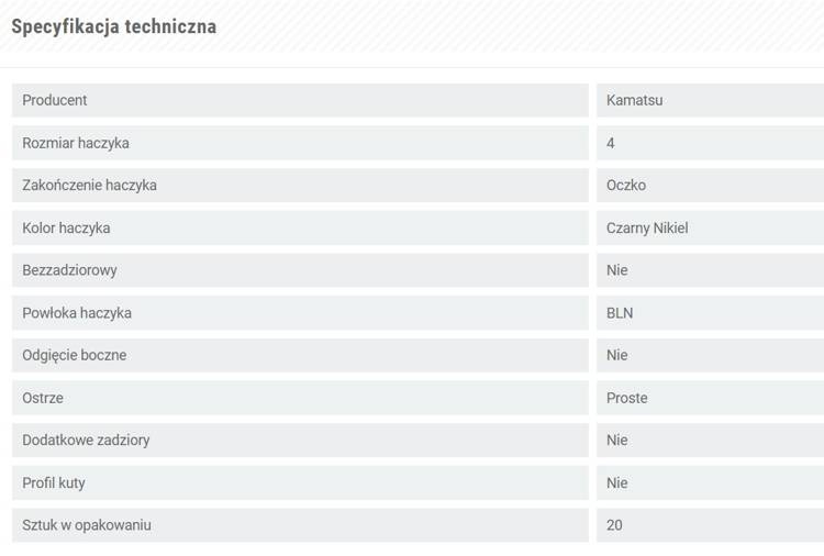 - Kolor haczyka: Czarny Nikiel