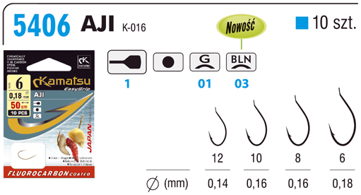 i to wszystko w wielu rozmiarach i kolorach pokrycia o różnych właściwościach. Znak Kamatsu to gwarancja,że każdy hak przeszedł kontrolę jakości i nie zawiedzie na łowisku.