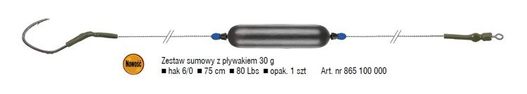 • ZESTAW SUMOWY Z PŁYWAKIEM 30g, 6/0/75cm/80lbs OP.1SZT KONGER 865100000