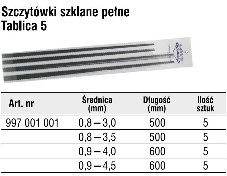 • SZCZYTÓWKI SZKLANE PEŁNE 20SZT. 3.0 - 4.5 tablica 5 997001001