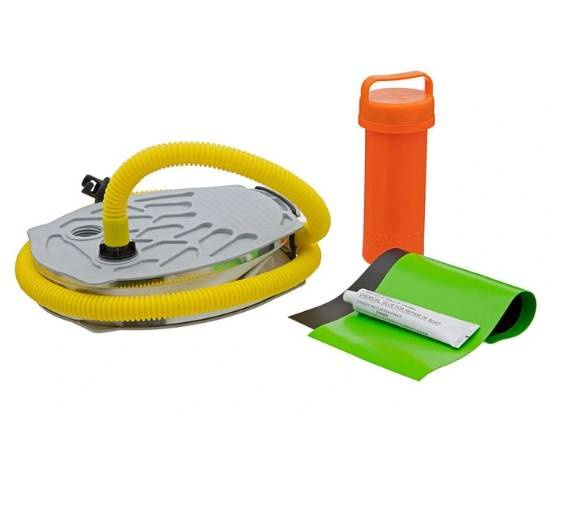 Jako kompletne wyposażenie belly boat sprzedajemy w zestawie z zestawem naprawczym, pompką nożną oraz solidną torbą.