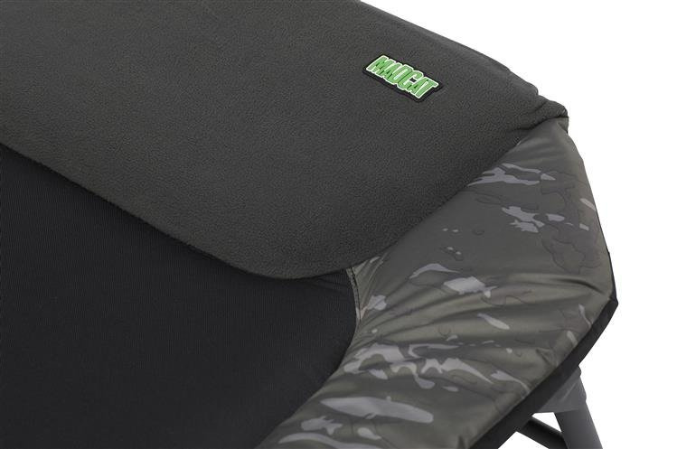 Duże, solidne i mocne stalowe łóżko z sześcioma regulowanymi nogami zakończonymi dużymi nakładkami błotnymi. Posiada wygodną poduszkę z polaru. Atrakcyjnie zaprojektowane z oryginalnym kamuflażem MADCAT CamoFish.