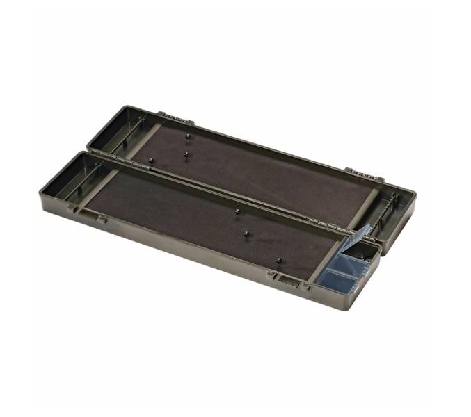 Wyjątkowo funkcjonalne pudełko na przypony wykonane z odpornego na uderzenia tworzywa ABS w ciemnozielonym kolorze. Specjalnie zaprojektowana poprzeczka na haczyki oraz twarda pianka z pinami. Dodatkowo pudełko jest wyposażone w trzy pojemniki na zapasowe haczyki, stopery do kulek czy inne drobne akcesoria. Niezbędne dla nowoczesnego karpiarza!