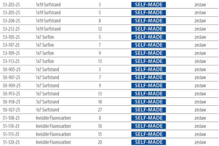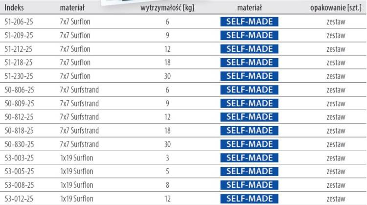zawierających 2,5 metra linki oraz 25 odpowiednio dobranych średnicą i długością rurek zaciskowych.