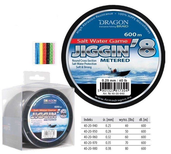 Plecionka morska Salt Water Game JIGGIN'8 600 m 0.28 mm/50 lb 7 kol. x 10 m DRAGON TDC-40-20-950