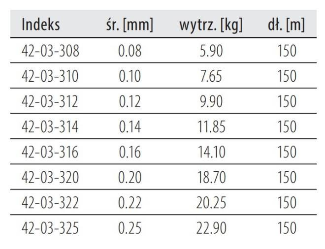 - ma zerową rozciągliwość; oferuje doskonałą czułość w zestawie spinningowym;
