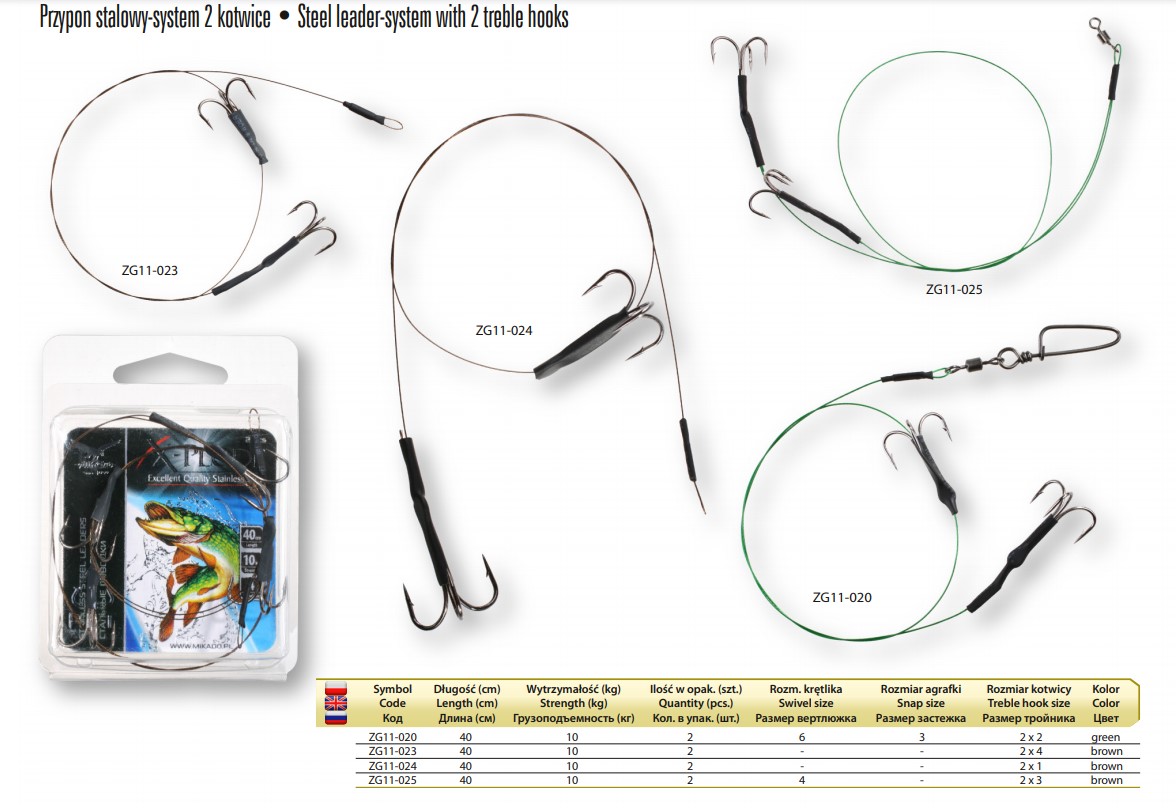 • PRZYPON STALOWY-SYSTEM 2 KOTWICE 40cm / 10 kg - op.2 szt (BROWN) MIKADO ZG11-023