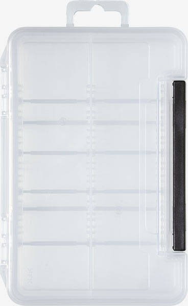Główna komora pudełka przeznaczona jest na nieco większe przynęty, posiada 2 regulowane przegródki.