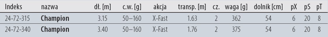 Dwa bardzo długie, dwuczęściowe wędziska spinningowe, lekkie i czułe, stosowane przez członków Kadry Narodowej.