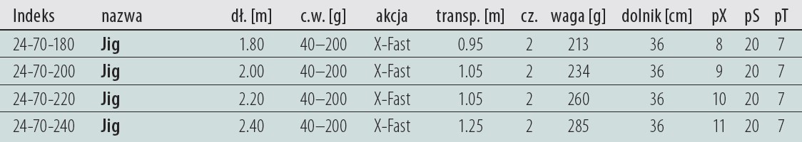 Dwuczęściowe wędki do lżejszych pilkerów i dużych przynęt miękkich. Specjalna konstrukcja szczytówki pozwala jej na ekstremalny zakres pracy podczas jigowania i doskonałą kontrolę szarpnięć ryby podczas holu na plecionce.