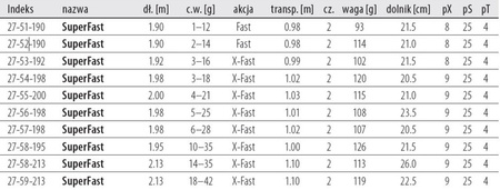 - pełne ugięcie pod obciążeniem, dające pewny hol z bardzo małym odsetkiem traconych ryb;