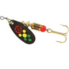 Błystki Black fury, Comet rewelacyjne na pstrągi (srebrny z czerwonymi kropkami) i okoniowe (czarny z czerwonymi kropkami).