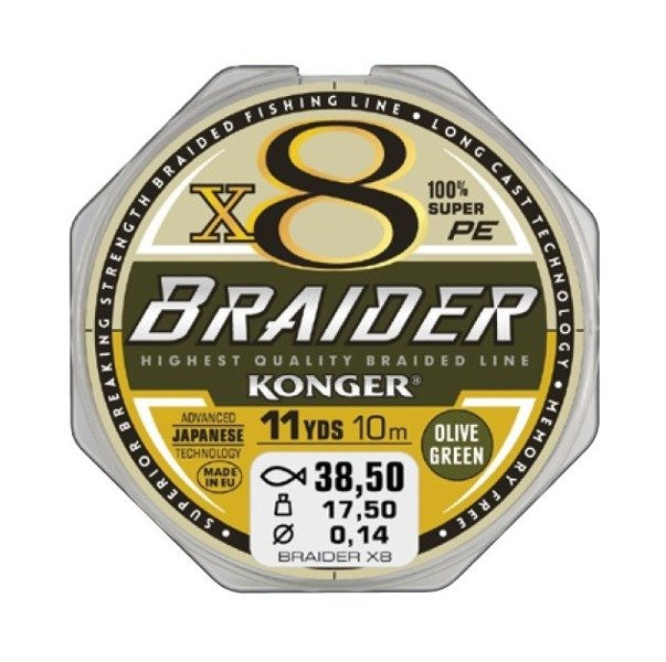 PLECIONKA PRZYPONOWA BRAIDER X8 OLIVE GREEN 0,25/10 KONGER 250012025