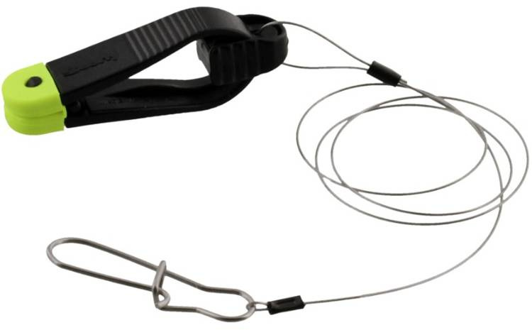 Kompaktowy klips Mini Power na przyponie 45 cm, z agrafką do bezpośredniego montażu do kuli trollingowej.