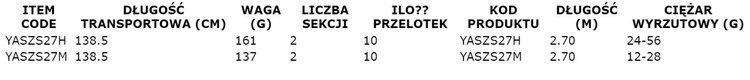 ITEM CODE | DŁUGOŚĆ TRANSPORTOWA (CM) | WAGA (G) | LICZBA SEKCJI | ILO?? PRZELOTEK | KOD PRODUKTU | DŁUGOŚĆ (M) | CIĘŻAR WYRZUTOWY (G) |