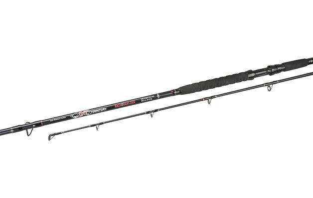 Seria uniwersalnych wędek sumowych CAT TERRITORY BANK2BOAT 300 c.w. up to 300 g (HMC 24T) MIKADO w różnych długościach zaprojektowana głównie z myślą o łowieniu stacjonarnym, jednak z holowaniem ryby ze środka pływającego. Szczególnie w miejscach, gdzie jest dużo zaczepów lub skał, czasami jedynym sposobem na uniknięcie przetarcia plecionki jest holowanie zaciętej ryby z łódki czy pontonu. Kije sumowe Bank2Boat posiadają odpowiednie długości do postawienia zestawów ze spławikiem podwodnym, zrywką, bojką a także gruntowych na wątrobę czy pellet, na mniejszych i średnich dystansach, jednak zachowując parametry oraz ugięcie spotykane w kijach przeznaczonych do holowania w pionie. Wysokiej klasy komponenty, anty-poślizgowe uchwyty i przelotki SiC zapewniają długie i bezawaryjne użytkowanie.