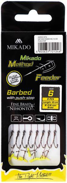 HACZYK DO METODY 10 cm PUSH STOP - haczyk z zadziorem: 4 / plecionka: 0.16 mm - op.8szt MIKADO HMFB212P-4