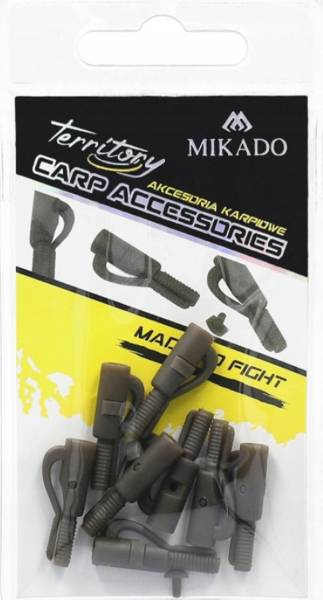 Standardowy klips bezpieczny z dodatkowym bolcem - zatyczką, blokującą krętlik wewnątrz klipsa. Takie rozwiązanie skutecznie poprawia efekt samozacięcia i zależnie od potrzeb, może ułatwić gubienie ciężarków podczas połowu w zaczepach.