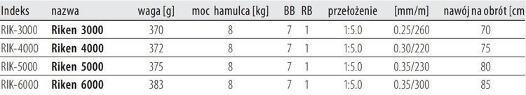 ■ hamulec: wielotarczowy hamulec przedni oraz system zwalniania wolnego biegu szpuli z regulacją z tyłu kołowrotka