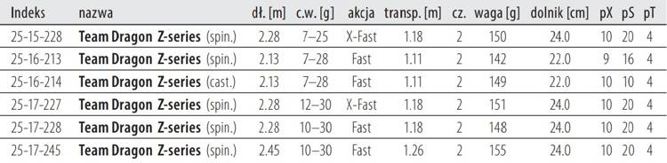 • Wędka  TEAM  Z-series 2.28m / Fuji 7-25g XF-M spinn. / spigot DRAGON CHI-25-15-228